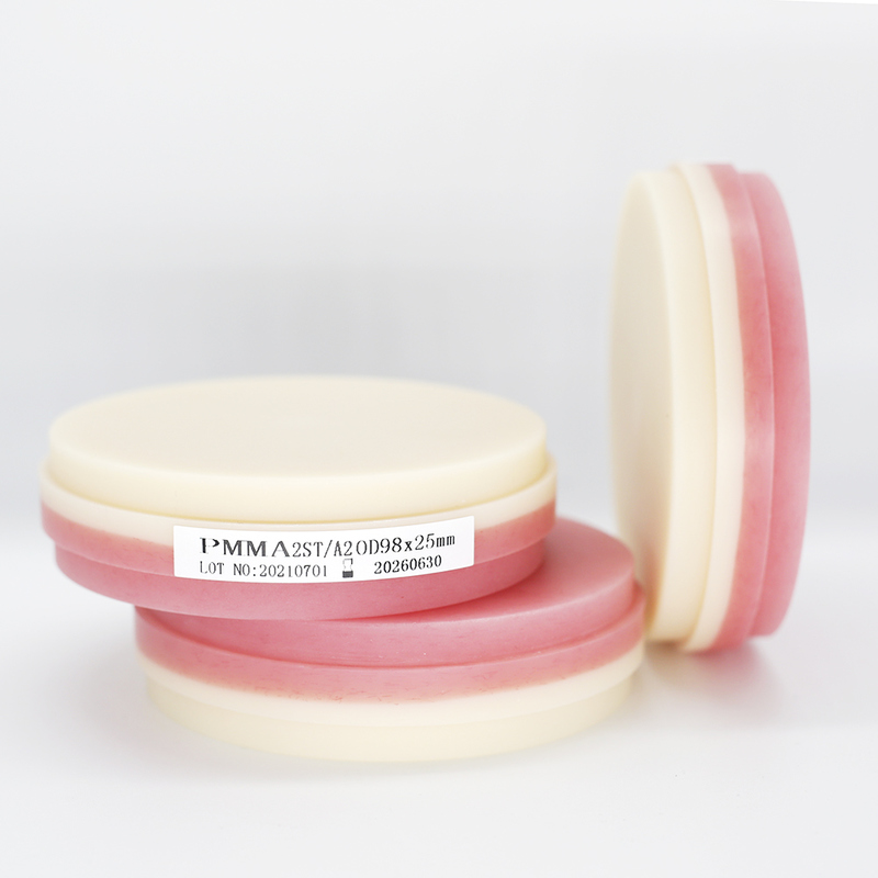 صورتی ((رژین جریان رنگ صورتی نشان می دهد و رزین خشک شده پس از استفاده از نور خشک کننده دندان رنگ سفید نشان می دهد.)